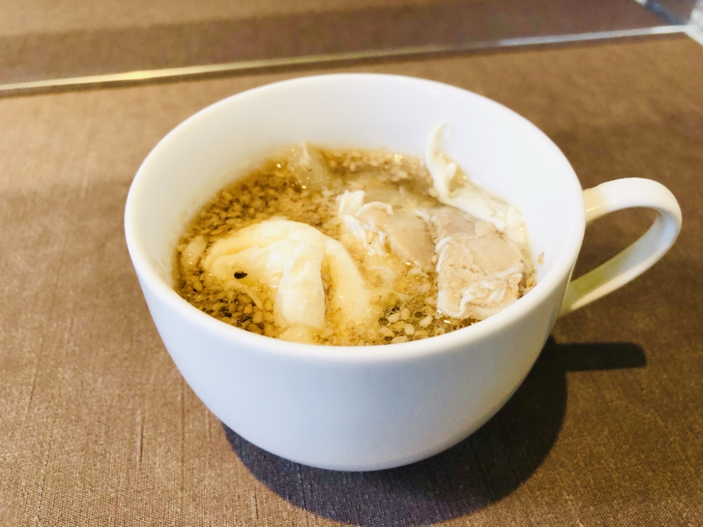 この日は、豚肉、玉ねぎ、卵、たっぷりのゴマが入ったスープでした。