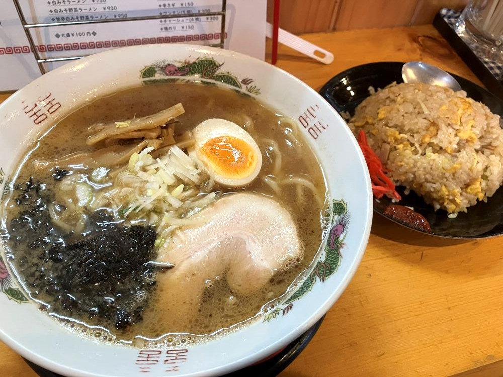 ラーメン(580円)だけでもお手頃感のある価格ですが、それに“半”とは言い難い量のチャーハンが付いて、なんと700円です。