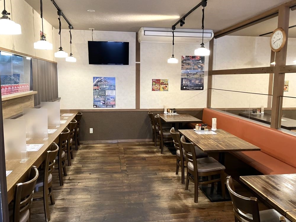 入店してすぐの正面には、カウンター席と4人掛けのテーブル席が3つ。