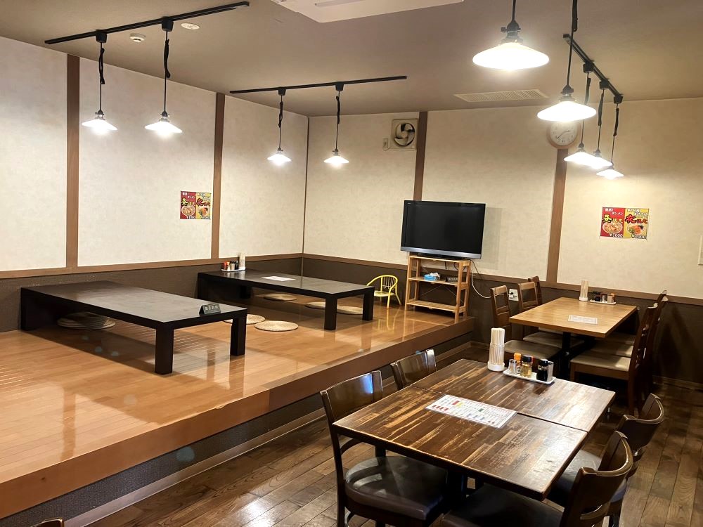 入り口から右奥のスペースにはテーブル席と小上がり席があります。