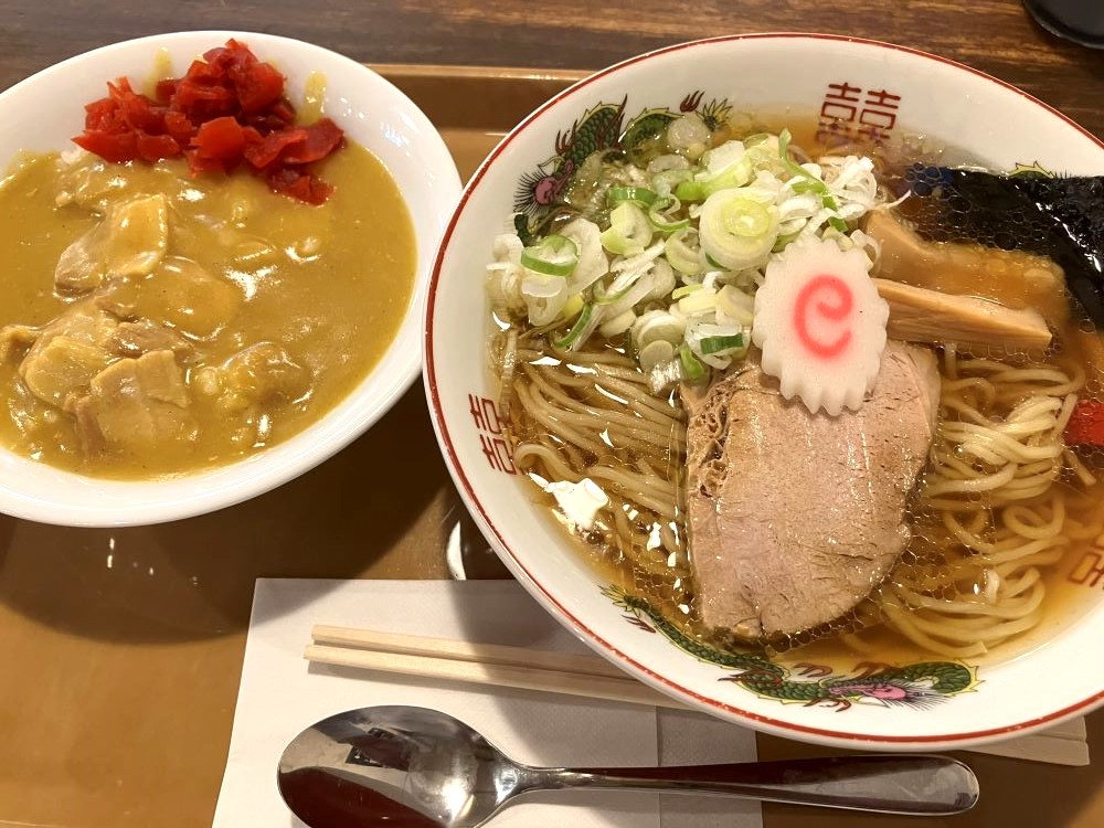 来店する方の多くが、この中華そばとカレーのセットメニューを注文するそうです。