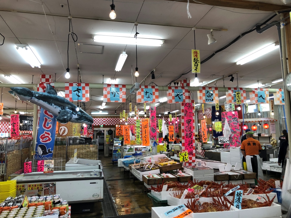 ところ狭しと、たくさんの新鮮な魚介類がならんでいます。