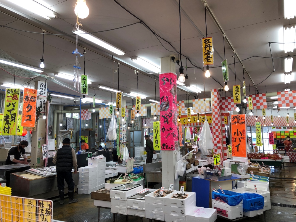 - 地魚の他、旬の魚介類や加工品、お土産も充実している。