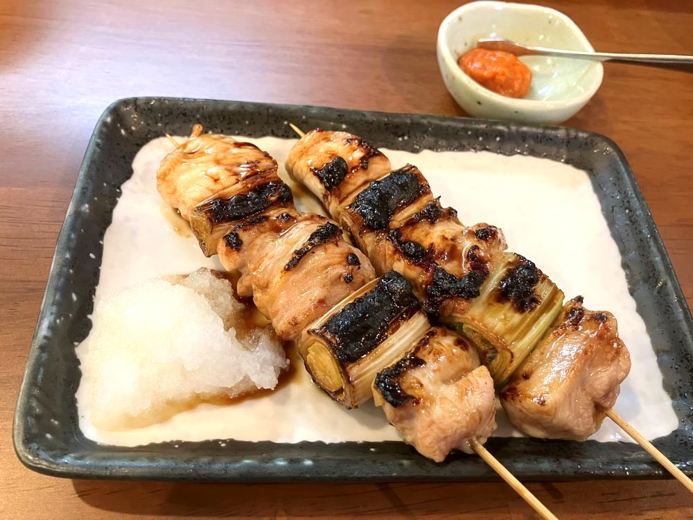鳥新の焼鳥には薬味として大根おろしとご当地調味料のかんずりが添えられています。