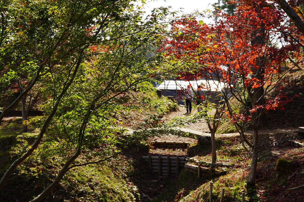 とにかくもみじの木の本数がとても多いので、あっちこっちを歩きながらもみじを間近で見たり、少し遠めで見るなどさまざまな見方を楽しめる「国府もみじ園」。