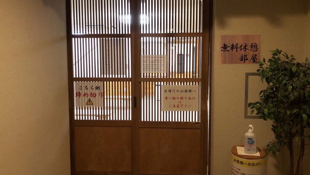 何か飲み物を買ったら、大浴場入口付近に無料休憩所の案内板がありますよ。