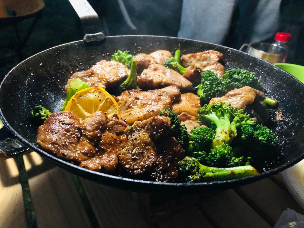 キャンプのプロに作ってもらったキャンプ飯を、絶景とともに満喫することができました。