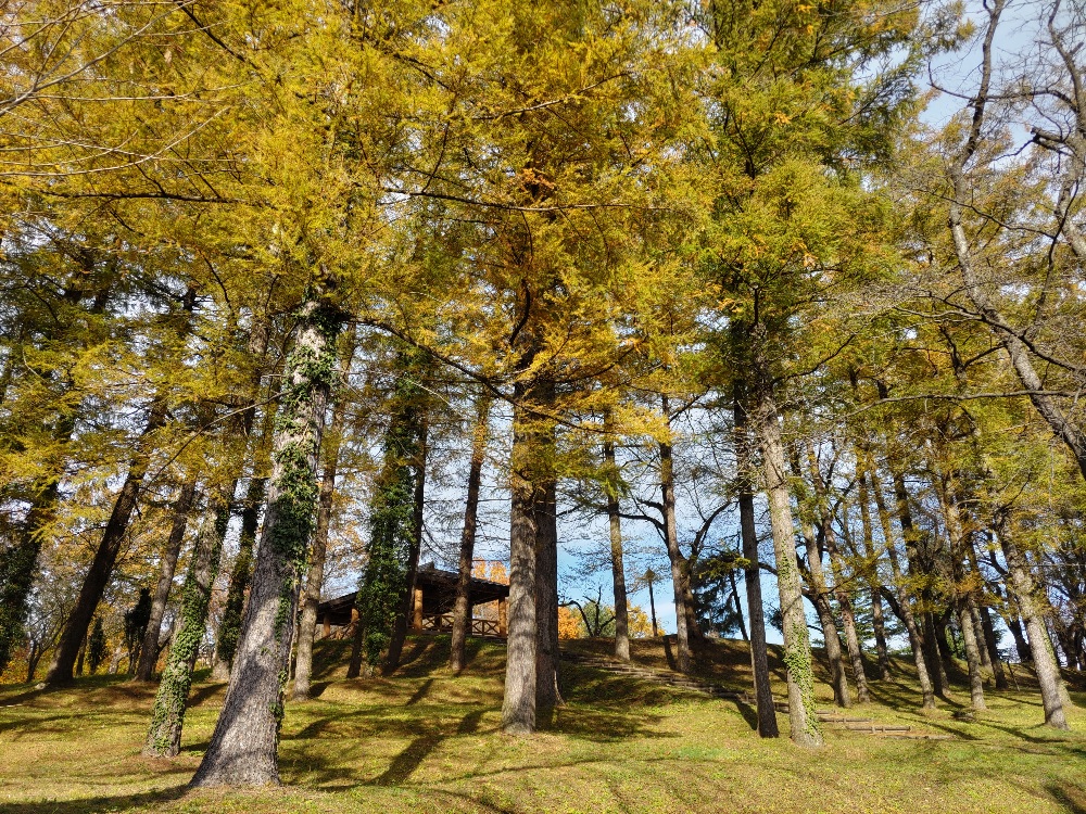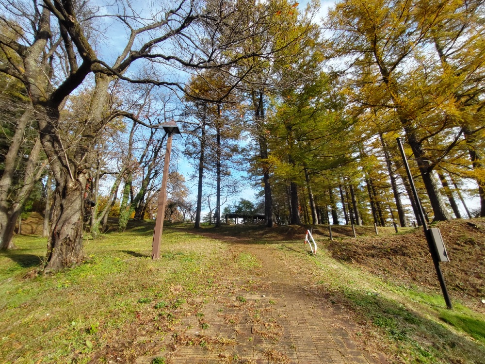 紅葉の時期に経塚山公園に来たのでイチョウの木が黄色に色づいていてとてもキレイでした。