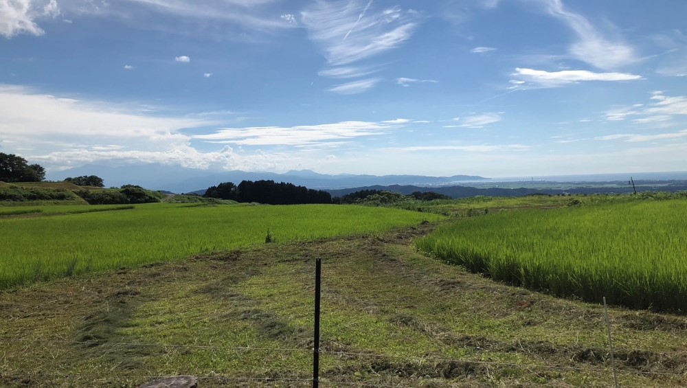 大出口泉水公園の正面には、くびき平野や日本海の大パノラマが一望できる環境になっています。この日は天気もよく、晴天の空と海と水田のコントラストがきれいで、何枚も写真を撮りました。
