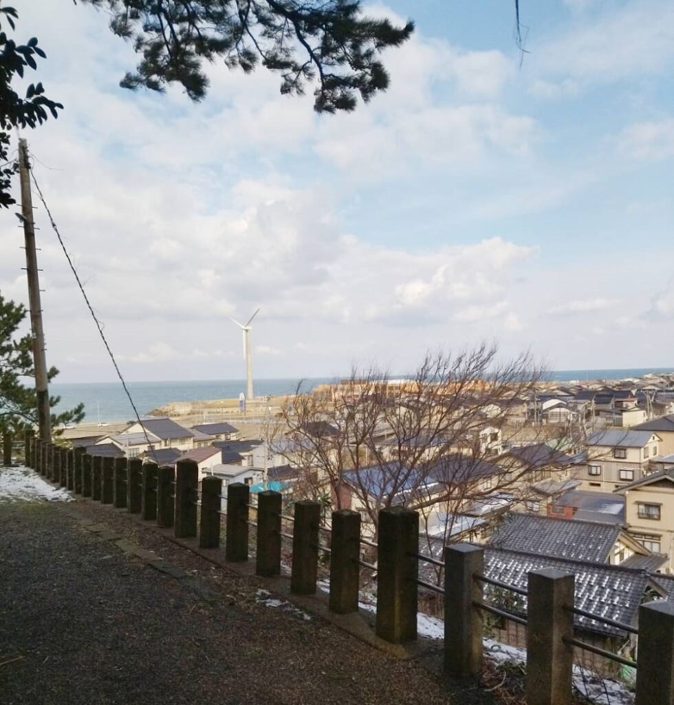 江野神社は、えちごトキめき鉄道名立駅が最寄り駅です。出口という看板を降りてからずっとまっすぐ歩くこと、15分程度の場所にあります。