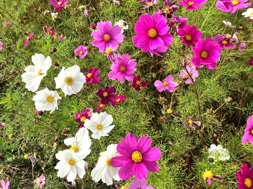 以前からなんとなく目にしていたコスモス畑は、近くに行くといっそうきれいで、関わる方々の優しさが伝わってくるすてきな場所でした。