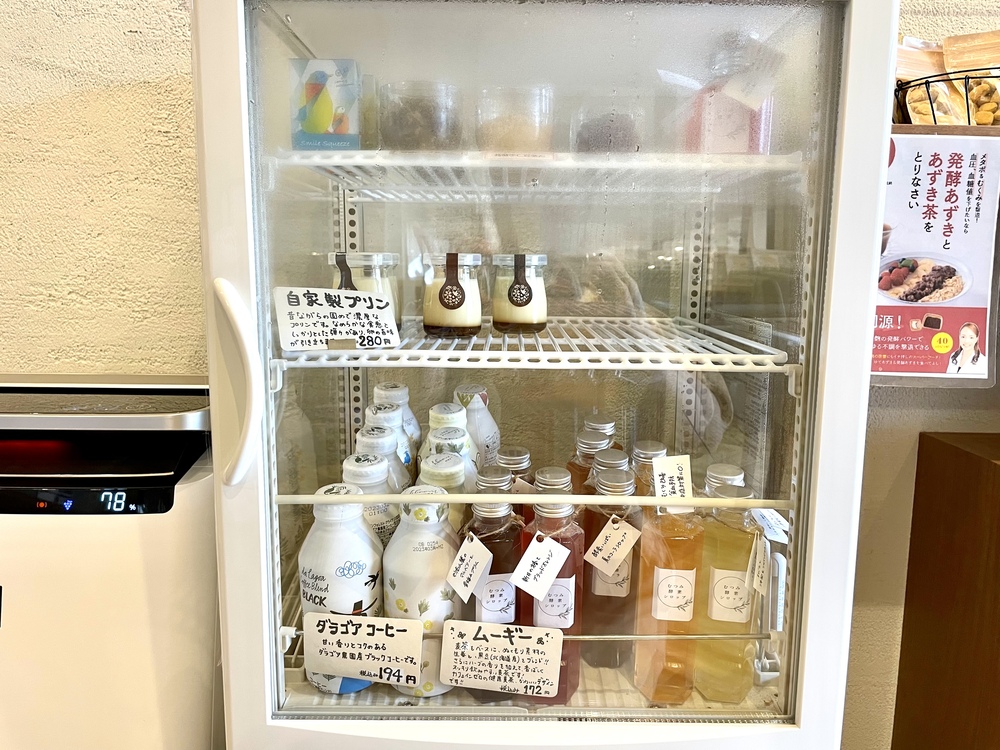 お店向かって右側の棚には、オリジナルの焼き菓子と冷蔵商品が置いてありました。